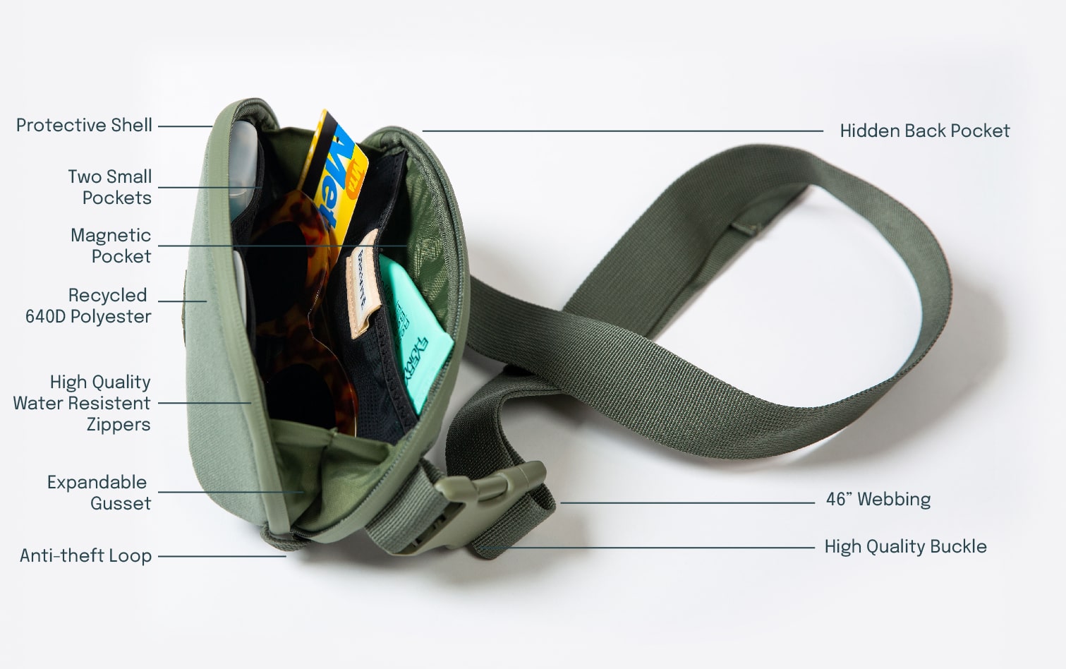 Smart Organization: 2 small pockets, one large magnetic pocket, and one discreet back pocket.