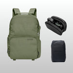 Fits as a personal item on every flight. Camera, lenses, MacBook, and everything I need while traveling.