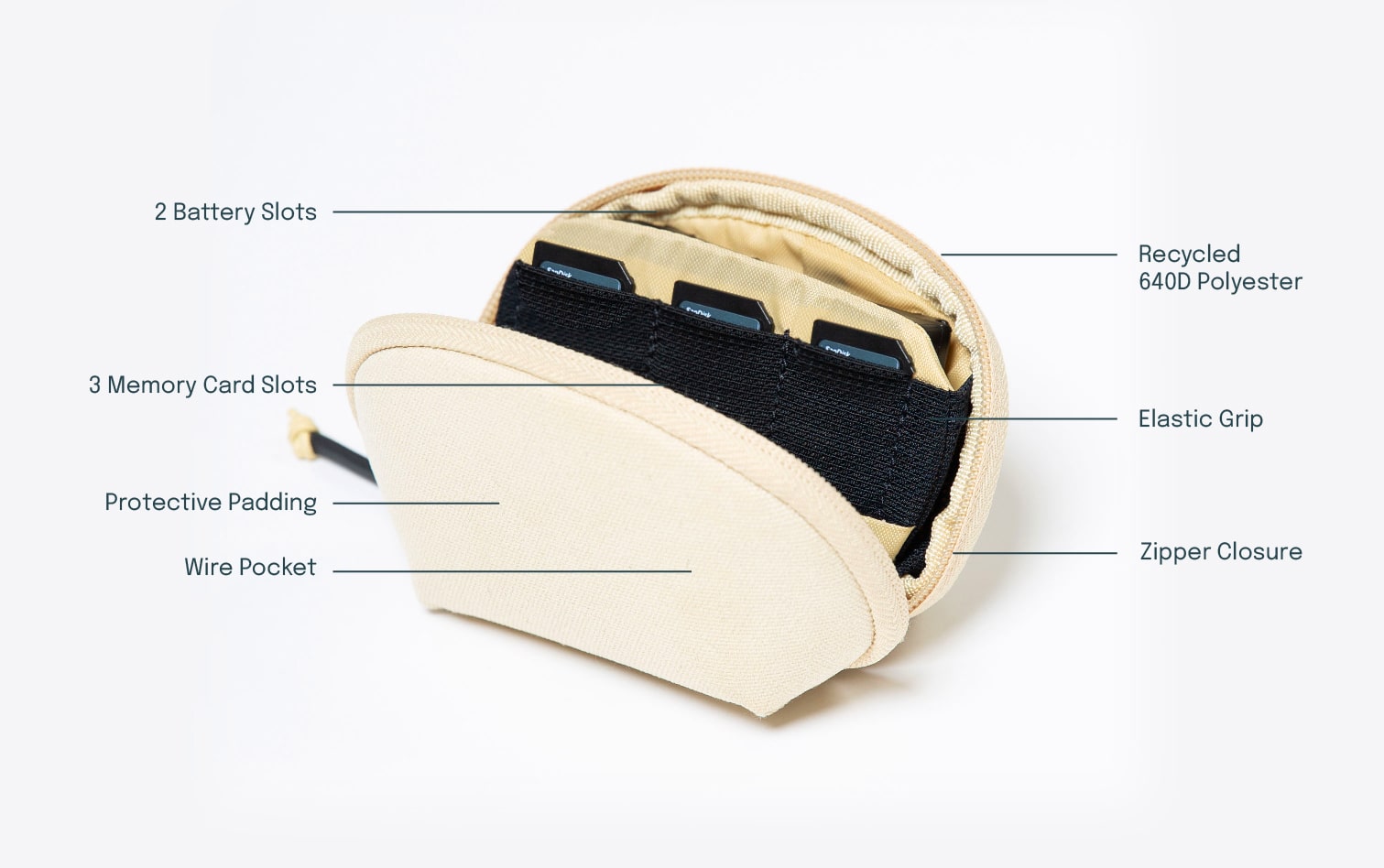 Smart Organization: 2 battery pockets, 3 memory card pockets, and 1 wire pocket